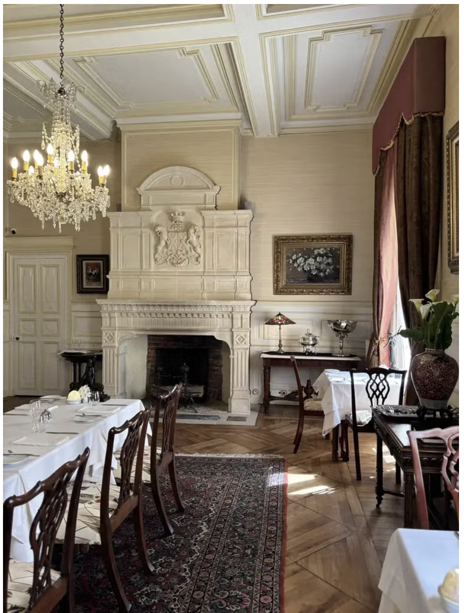 Entouré de parc et d’arbres remarquables, le Château des Tesnières s’impose à la fois comme un sanctuaire et une scène. Sa façade élégante et ses jardins soigneusement entretenus reflètent la sophistication sereine qui définit l’expérience Mosaic. À l’intérieur, l’architecture historique dialogue avec un raffinement contemporain : lustres en cristal, cheminées d’origine et salle à manger intime, propice à une immersion feutrée.