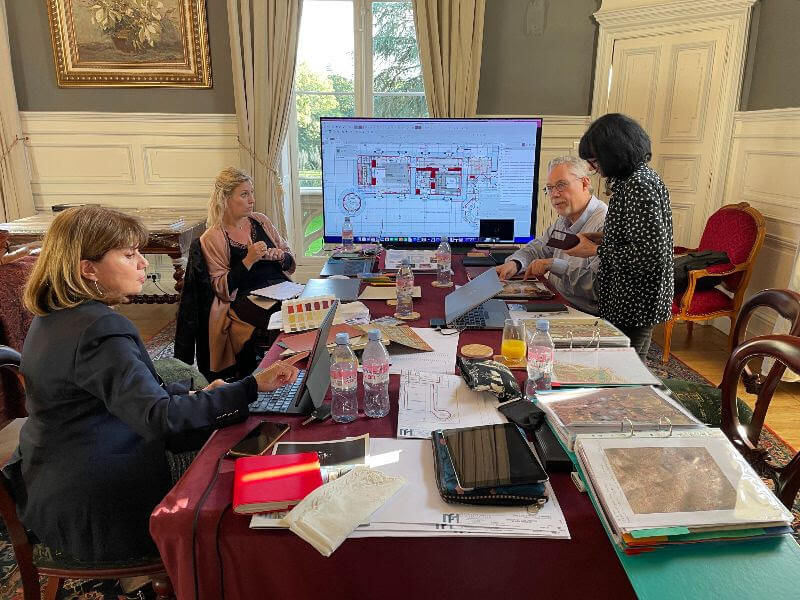 With our first phase of renovation, starting on the very top floor of the castle, in the middle of last year, now fast approaching completion, we commenced with the exhilarating chapter of interior decoration together with our professional team – architect, Marine Fervel and interior designer, Martine Di Matteo.